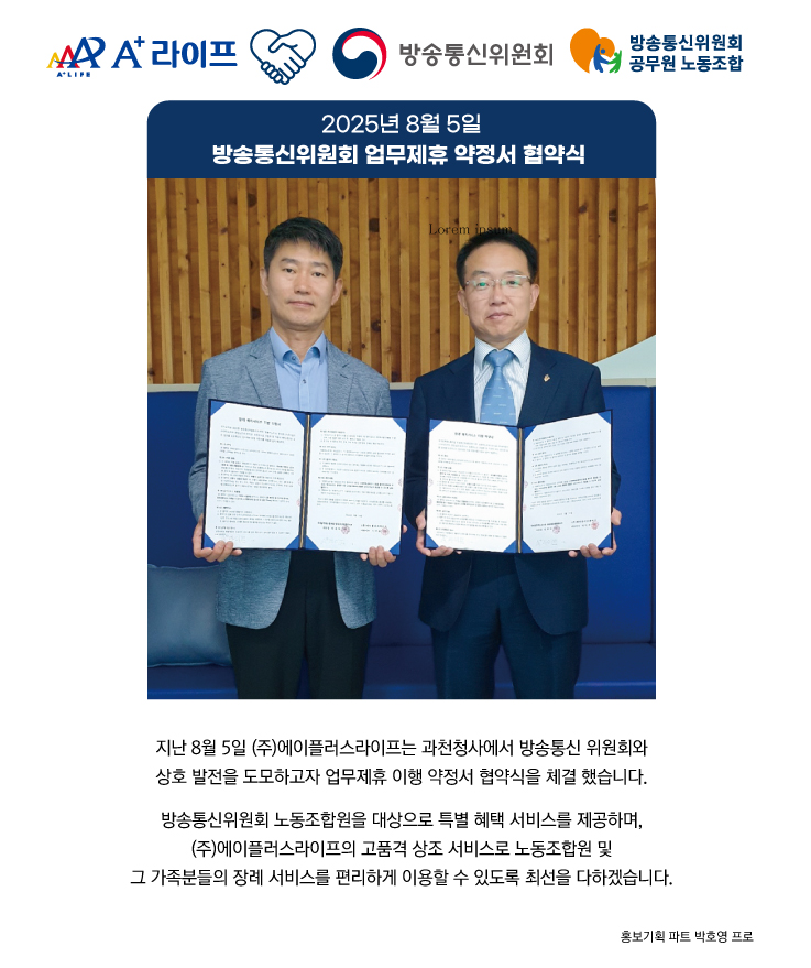 (소식) 에이플러스라이프가 방송통신위원회 노동조합원과 제휴 협약 체결