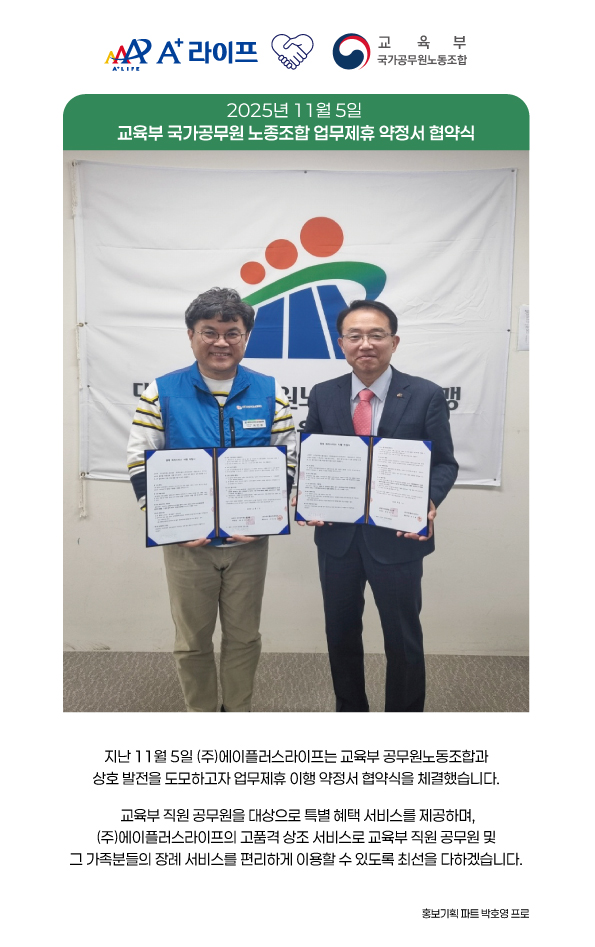 (소식) 에이플러스라이프가 교육부 직원 공무원 노동조합과 제휴 협약 체결