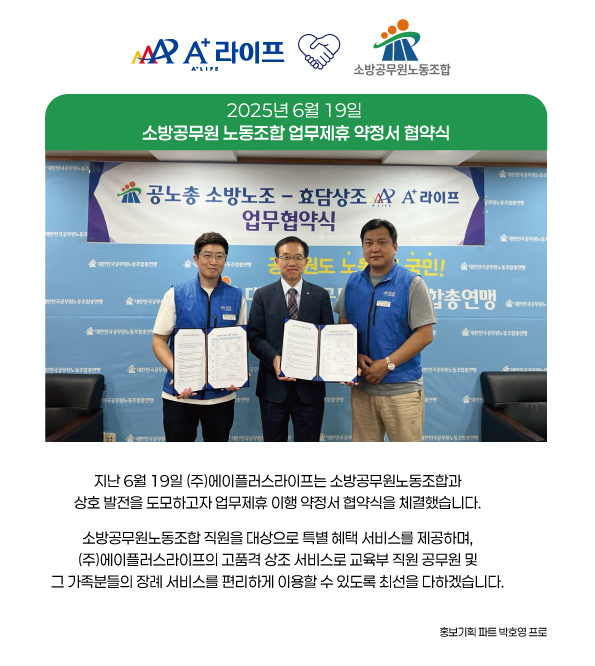 (소식) 에이플러스라이프가 소방공무원 노동조합과 업무제휴 약정서 협약식