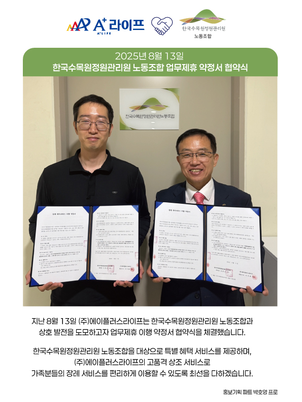 (소식) 에이플러스라이프가 한국수목원정원관리원 노동조합과 업무제휴 약정서 협약식