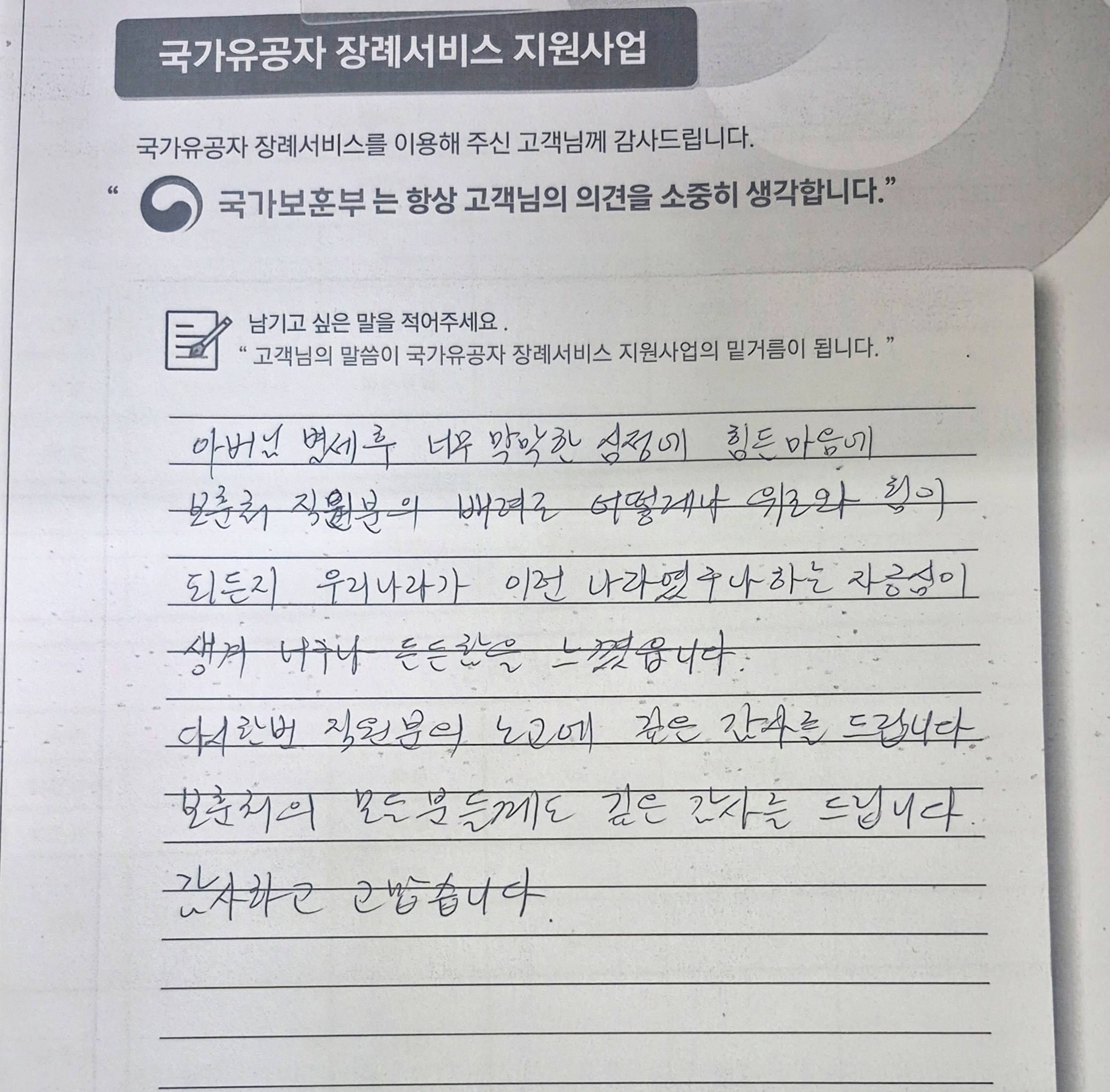 아버님 별세 후 너무 막막한 심정에 힘든 마음에 효담상조 직원분의 배려로 어떻게나 위로와 힘이 되는지 '우리나라가 이런 나라였구나' 하는 자긍심이 생겨 너무나 든든함을 느꼈습니다. 다시 한 번 직원분의 노고에 깊은 감사를 드립니다.